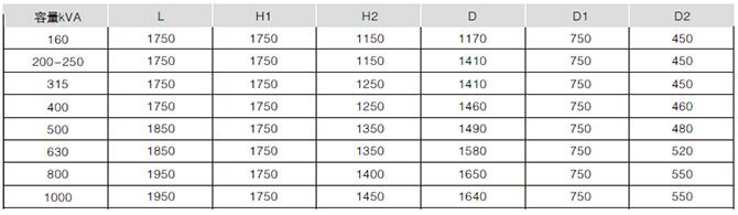 注:a.根據(jù)用戶要求變壓器的高壓分接范圍可設(shè)計為±2×2.5%; b.根據(jù)用戶要求變壓器的低壓可設(shè)計為0.69KV。